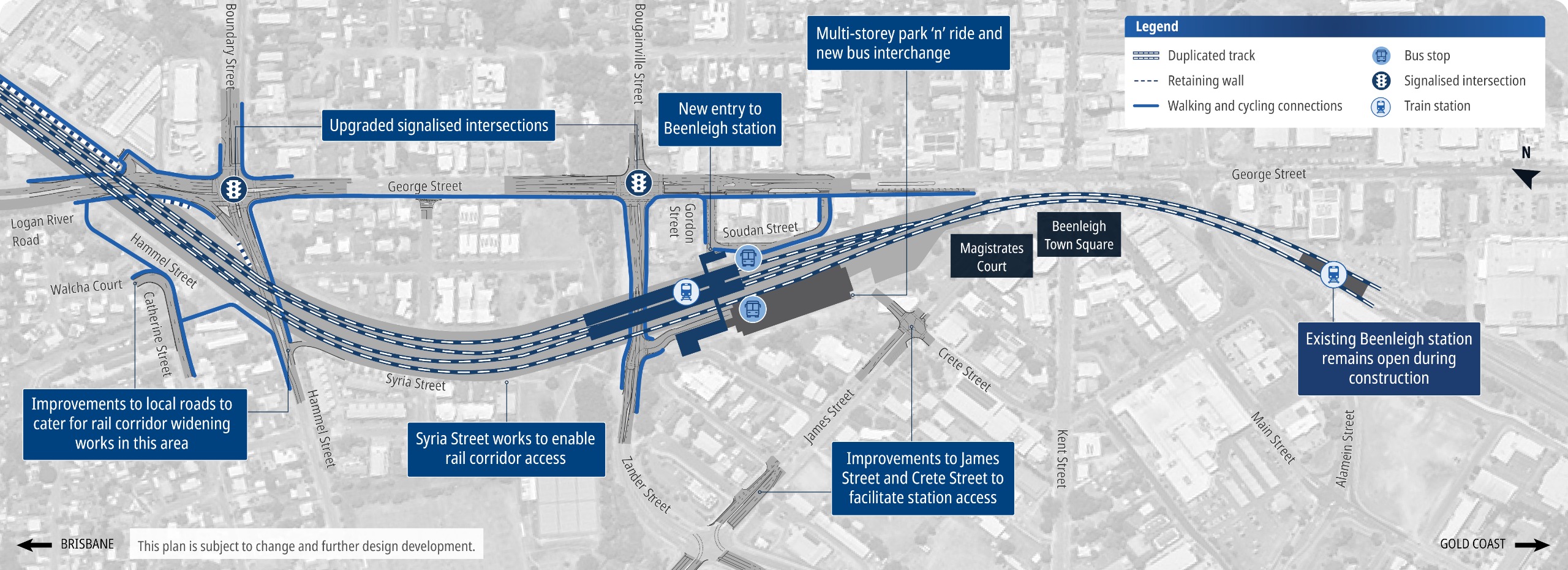 - improved walking connections between the station and local destinations, and nearby amenities including Beenleigh Town Square, Beenleigh Library, Beenleigh State School and businesses